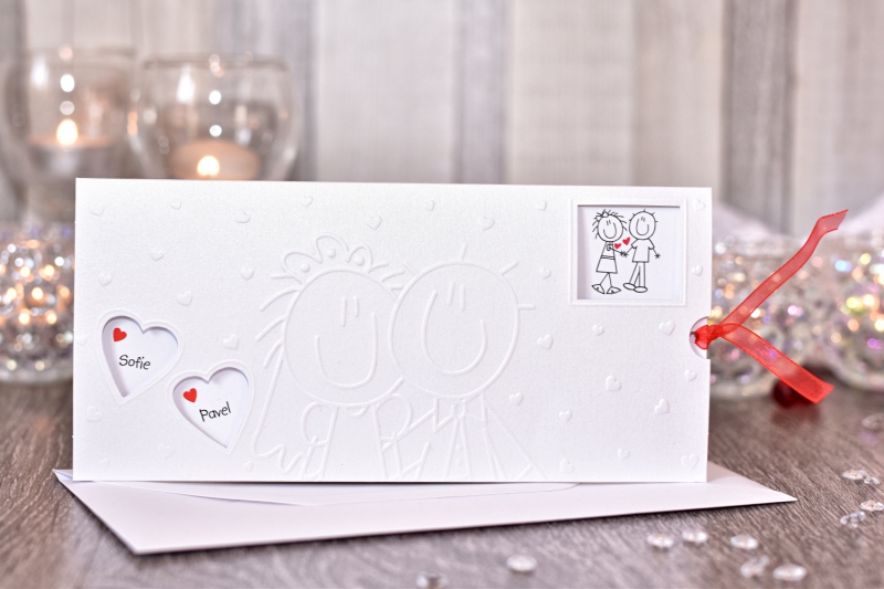 Obálku v jiné barvě, nebo obálku s tištěným motivem si můžete objednat v nabídce svatebních obálek.