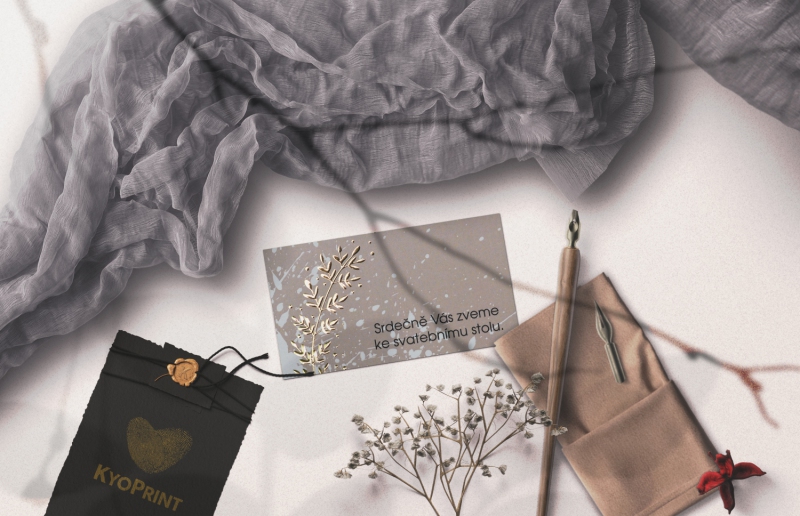 Pozvánka ke svatebnímu stolu s moderním designem. Tisk na kvalitním papíru v gramáži 300g/m2 s povrchovou úpravou matného soft touch lamina.