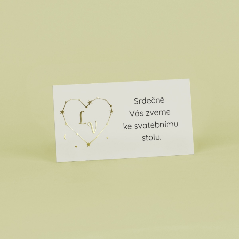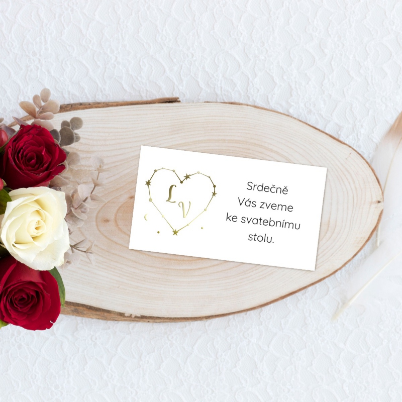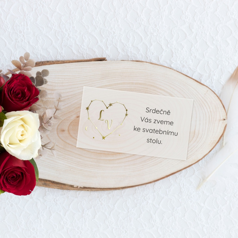 Pozvánka ke svatebnímu stolu s moderním designem. Tisk na kvalitním papíru v gramáži 300g/m2 s povrchovou úpravou matného soft touch lamina.