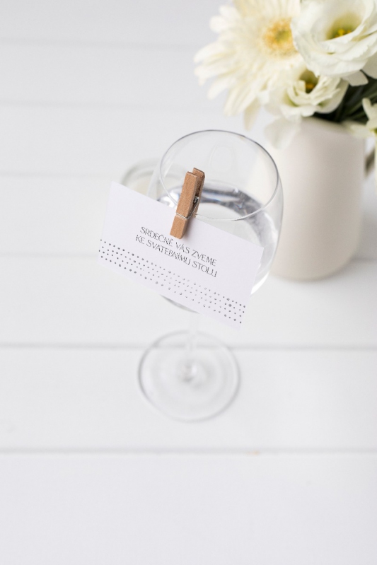 Pozvánka ke svatebnímu stolu s moderním designem. Tisk na kvalitním papíru v gramáži 300g/m2 s povrchovou úpravou matného soft touch lamina.
