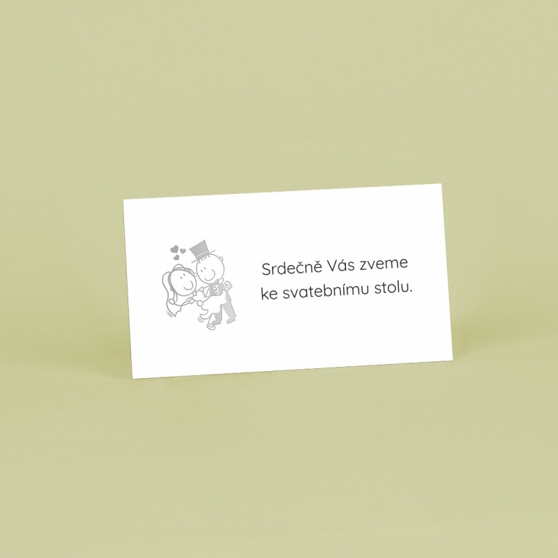 Pozvánka ke svatebnímu stolu s moderním designem. Tisk na kvalitním papíru v gramáži 300g/m2 s povrchovou úpravou matného soft touch lamina.