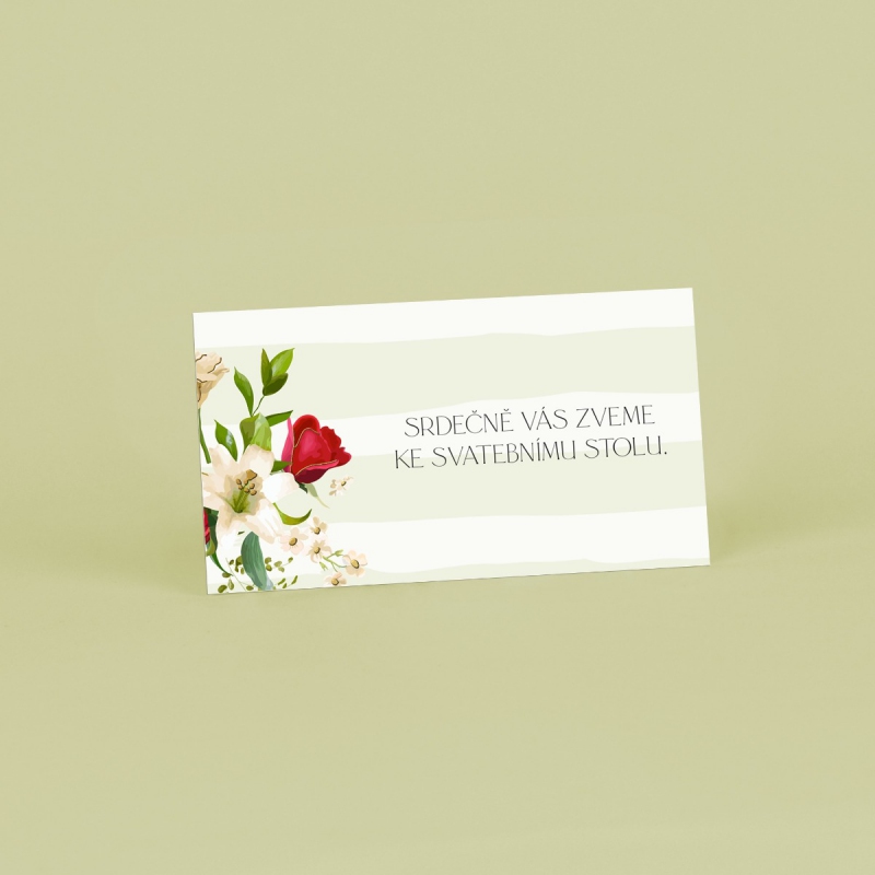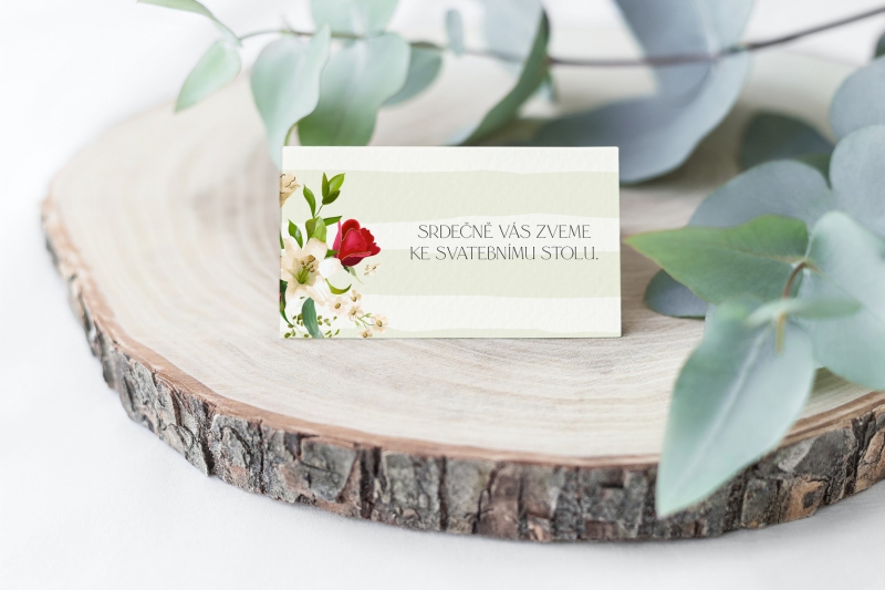 Pozvánka ke svatebnímu stolu s moderním designem. Tisk na kvalitním papíru v gramáži 300g/m2 s povrchovou úpravou matného soft touch lamina.