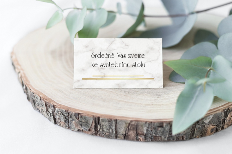 Pozvánka ke svatebnímu stolu s moderním designem. Tisk na kvalitním papíru v gramáži 300g/m2 s povrchovou úpravou matného soft touch lamina.