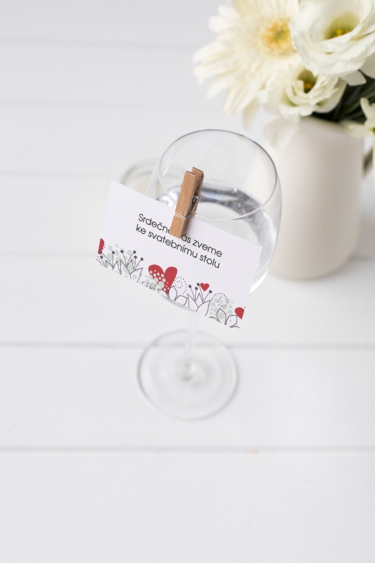 Pozvánka ke svatebnímu stolu s moderním designem. Tisk na kvalitním papíru v gramáži 300g/m2 s povrchovou úpravou matného soft touch lamina.