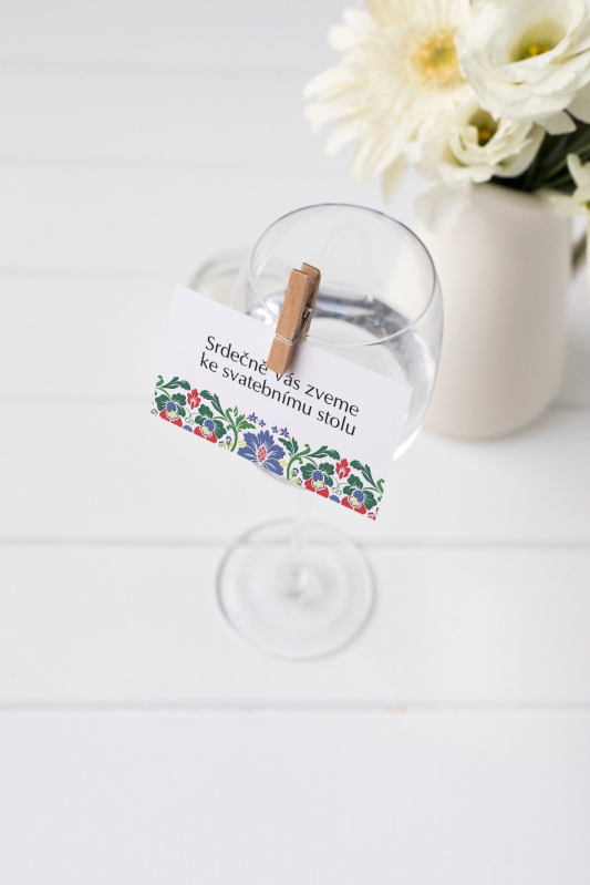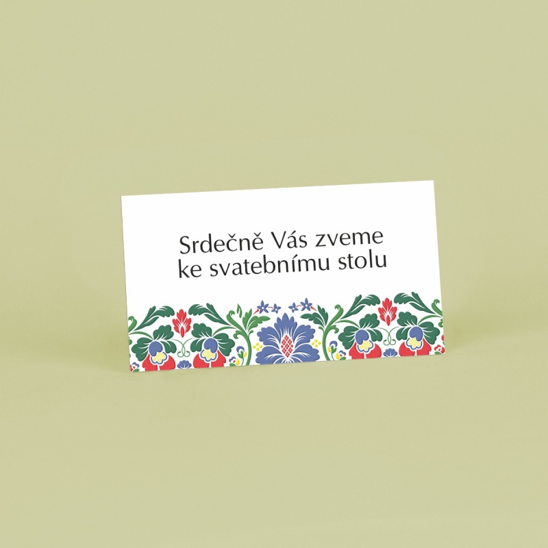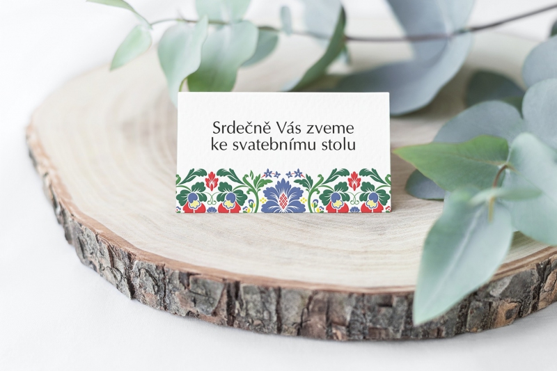 Pozvánka ke svatebnímu stolu s moderním designem. Tisk na kvalitním papíru v gramáži 300g/m2 s povrchovou úpravou matného soft touch lamina.