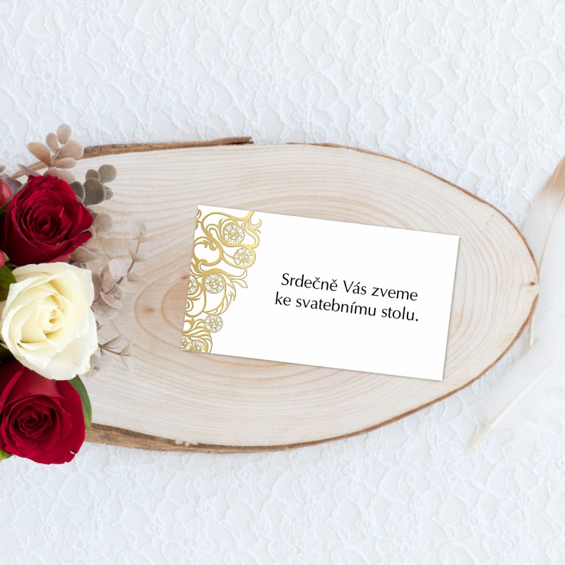 Elegantní pozvánka ke svatebnímu stolu s moderním designem, který vynikne na různobarevných grafických papírech. V jednoduchosti je krása.
