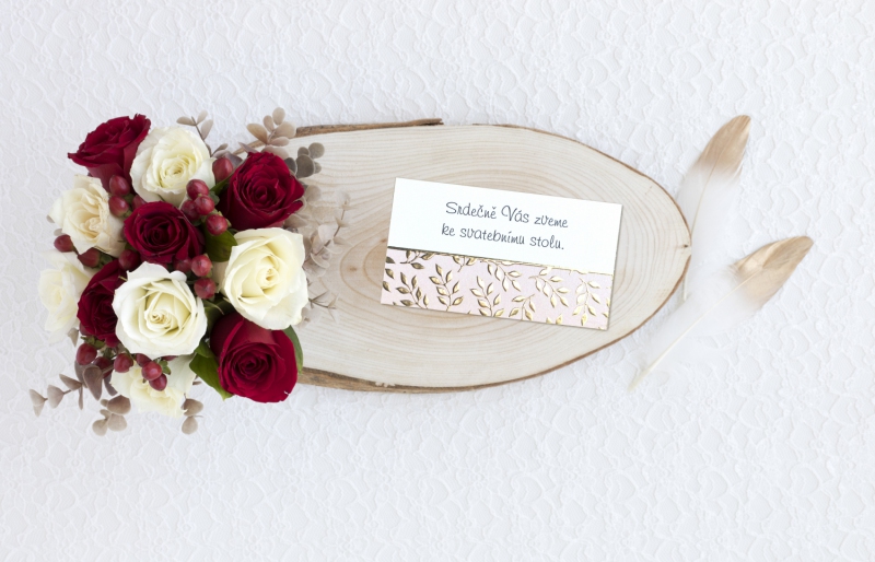 Pozvánka ke svatebnímu stolu s moderním designem. Tisk na kvalitním papíru v gramáži 250g/m2.