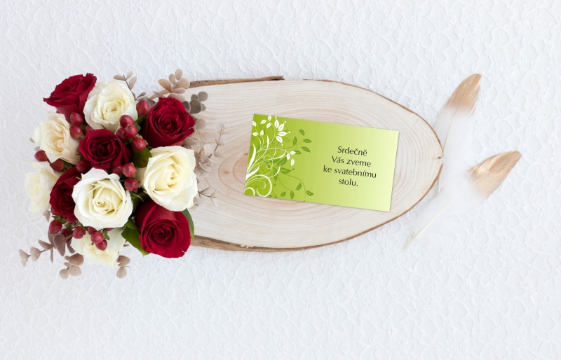 Elegantní pozvánka ke svatebnímu stolu s moderním designem, který vynikne na různobarevných grafických papírech. V jednoduchosti je krása.