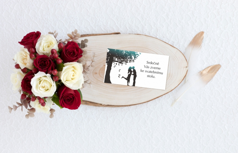 Elegantní pozvánka ke svatebnímu stolu s moderním designem, který vynikne na různobarevných grafických papírech. V jednoduchosti je krása.