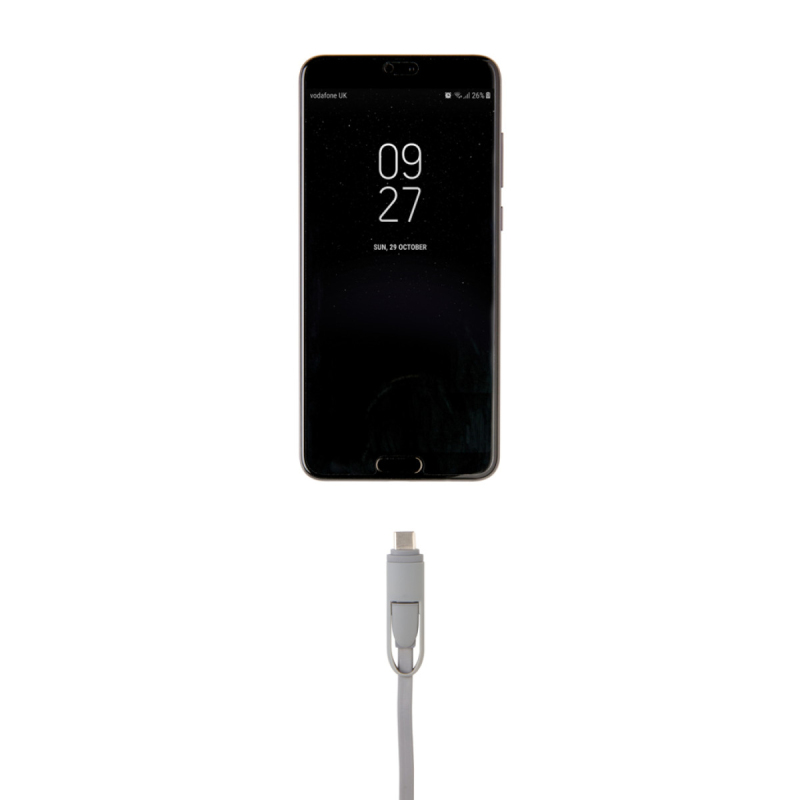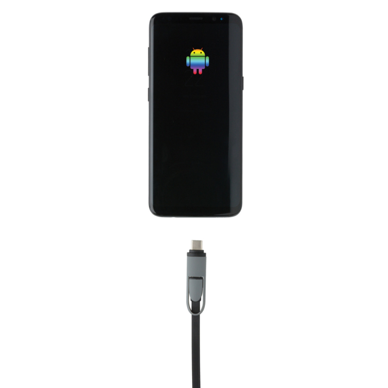 Kompaktní nabíjecí kabel 3 v 1 obsahující konektory USB typu C a dvojitý konektor pro zařízení s iOS nebo Android využívající micro USB. Díky svinovacímu mechanizmu je 1m dlouhý kabel skladný a vhodný na cesty. Pouzdro z ABS, bužírka kabelu z TPU. Pro nabíjení i synchronizaci dat.