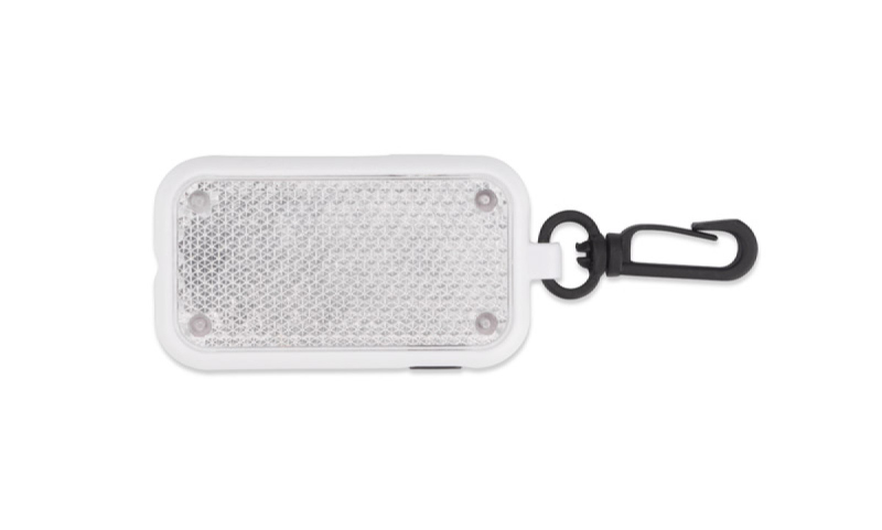 LITTO svítící přívěsek vyrobený z plastu. Má 3 režimy svícení: nepřetržité, blikání s vyšší a nižší frekvencí. Přívěsek zlepšuje viditelnost po setmění a zvyšuje bezpečnost.