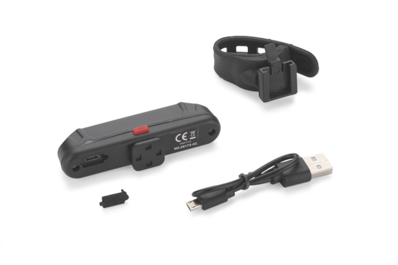Cyklistická lampa FARO je skvělou pomůckou pro cyklisty. Je vybaven COB LED a vestavěnou baterií s kapacitou 500 mAh. Má pět provozních režimů: červené a bílé stálé světlo, dva režimy červeného blikajícího světla a střídavě blikající červené a bílé světlo. Díky tomu jej lze použít jako přední i zadní svítilnu. Sada obsahuje kabel micro USB pro nabíjení. Má pohodlnou silikonovou rukojeť.