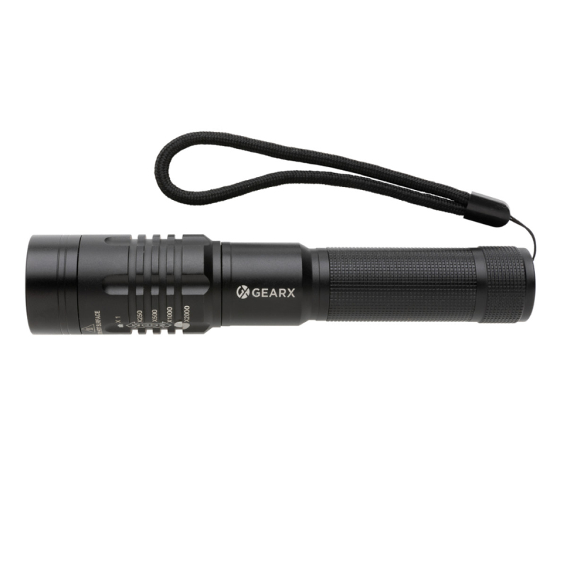 Vysoce funkční, výkonná a velmi stylová opakovaně dobíjitelná svítilna. Tělo vyrobené z prémiového hliníku skvěle padne do ruky. Funkce rozostření světla umožňuje jeho rozšíření až o 2 000 násobek. Výkonná žárovka se svítivostí 1 000 lumenů a dosvitem až 500 m. Více módů světla včetně SOS. IPX4 zabezpečuje odolnost vůči nepřízni počasí nebo vlhkosti. Integrovaná baterie s kapacitou 2 000 mAh umožňuje opakované dobíjení jednoduše skrze USB port a pužívání až 4h na jedno nabití.