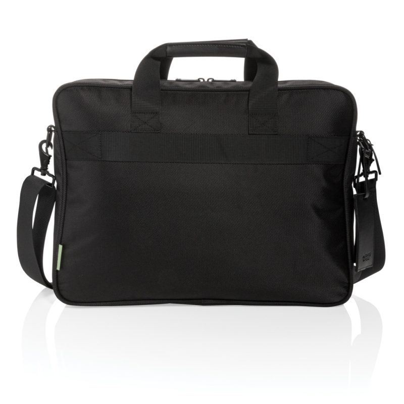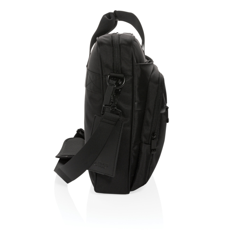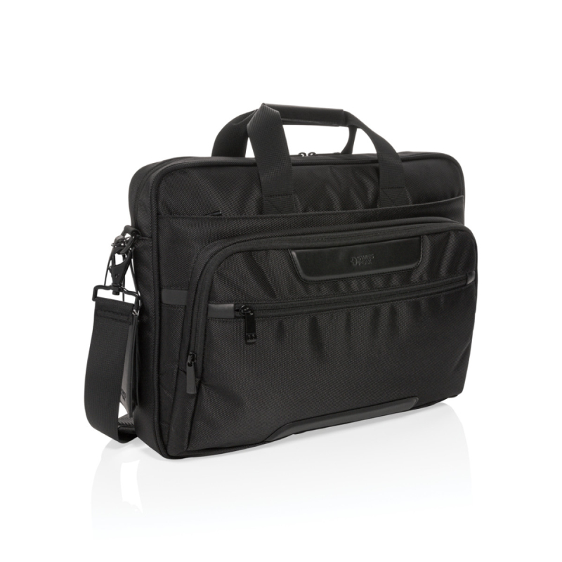Elegantní skvěle vybavená taška pro každodenní cestování. Vyrobená z pevného polyesteru 1680D s bohatými detaily z umělé kůže a množstvím kapes. Prostorný hlavní oddíl, polstrovaný oddíl na 15,6" notebook, dodatečná menší kapsa na zip. USB výstup pro nabíjení telefonu na cestách, kapsy s RFID ochranou, poutka na pera, postranní kapsa na lahev a odnímatelný kontaktní štítek. Složení: vnější část: 100 % 1680D polyester; vnitřní část (podšívka): 210D polyester.