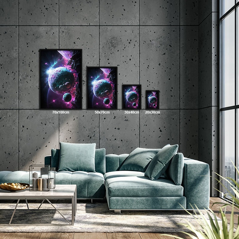 Plakáty s moderní digitální grafikou jsou skvělou volbou pro všechny, kteří hledají jednoduchý a rychlý způsob, jak obohatit svůj interiér a zvýraznit svůj vkus pro design.