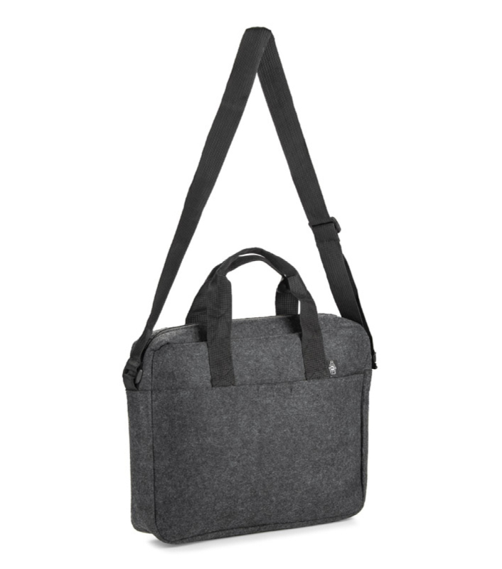 Brašna na notebook TEKKO je vyrobena z recyklované plsti rPET, takže je odolná a lehká. Má krátké rukojeti a nastavitelný dlouhý ramenní popruh. Hlavní prostor bez dalších přihrádek se uzavírá na zip. Na přední straně je kapsa na drobnosti, zapínaná na suchý zip. Díky jednoduchému a funkčnímu designu je taška vhodná pro každodenní použití. Možnost označení značkou z ní činí atraktivní reklamní pomůcku.