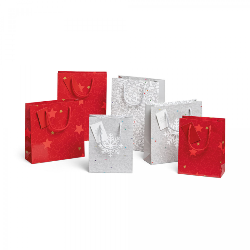 Malá papírová staška s lesklým laminováním (170 g/m²). Kartonové dno a přizpůsobitelná karta. 180 x 230 x 80 mm | Šňůrka: ø6 x 300 mm