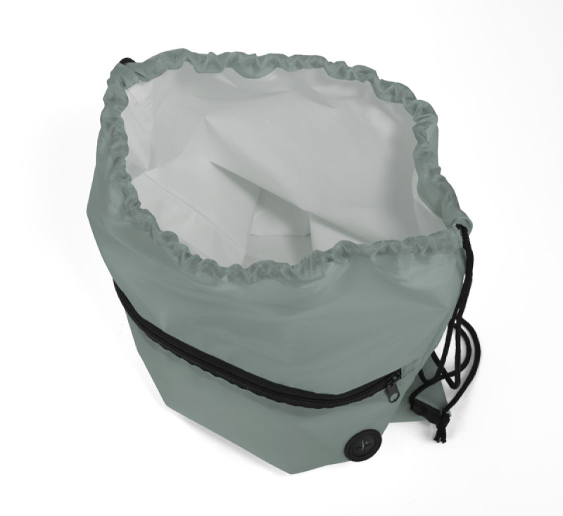 A fashionable bag-shaped backpack. On hot days, you can use the backpack to store food and drinks and enjoy their freshness as the main compartment is thermally insulated. The backpack has a zipped outer pocket with headphone access. The product is made of polyester with PEVA-type thermal insulation.