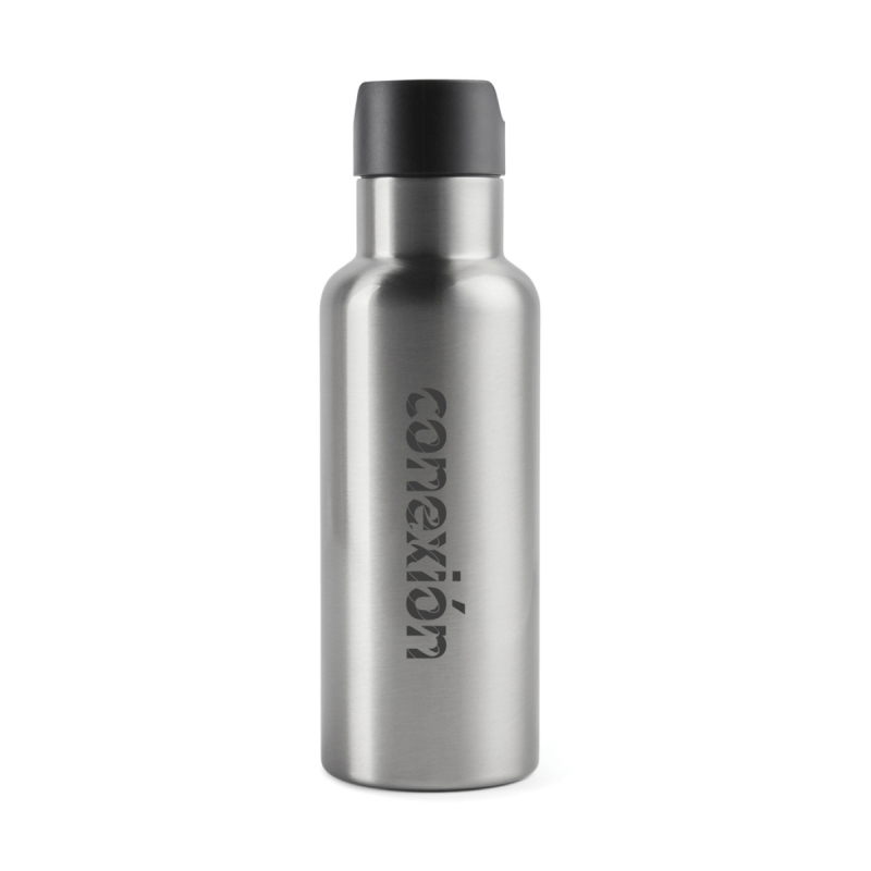 Praktická stylová láhev na vodu s odolnou dvojitou stěnou. Vakuová izolace uchová teplé nebo studené až 6 hodin. Vychutnejte si na výletě svůj oblíbený studený nápoj, nebo si vezměte hřejivý šálek čaje či kávy na ranní cestu do práce. Funkce push-mug. Objem: 500 ml.