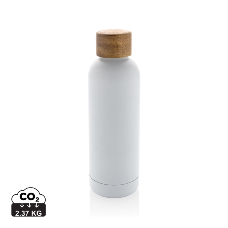 Termo lahev Wood s nerezerovou dvojitou stěnou a víčkem z akáciového dřeva. Nápoje uchová až 5 hodin horké a až 15 hodin studené. Vyrobená z RCS recyklovaných materiálů. RCS (Recycled Claim Standard) je globální standard, který umožňuje ověřit použití recyklovaného materiálu v produktu napříč celým dodavatelským řetězcem. Celkový podíl recyklátu dle váhy produktu: 88 %. Objem: 500 ml. Bez BPA. Baleno v kraftové dárkové krabičce.