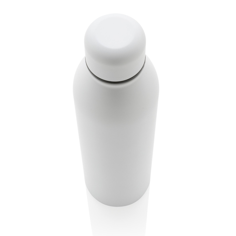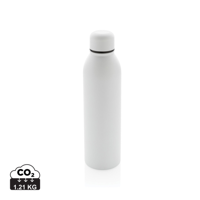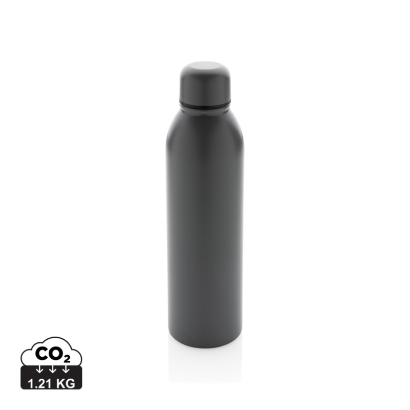 Nepropustná termo lahev s bezpečným šroubovacím uzávěrem s úzkým hrdlem pro pohodlné pití. Úzké tělo pasuje do většiny automobilových držáků na nápoje. Dvoustěnná vakuová izolace uchová nápoj horký po dobu až 5h a studený až 15h. Vyrobeno z RCS recyklované nerezavějící oceli. RCS (Recycled Claim Standard) je globální standard, který umožňuje ověřit použití recyklovaného materiálu v produktu napříč celým dodavatelským řetězcem. Podíl použitého recyklovaného materiálu vzhledem k celkové váze produktu: 90 %. Bez BPA. Objem: 500 ml. Baleno v FSC kraftové krabičce.