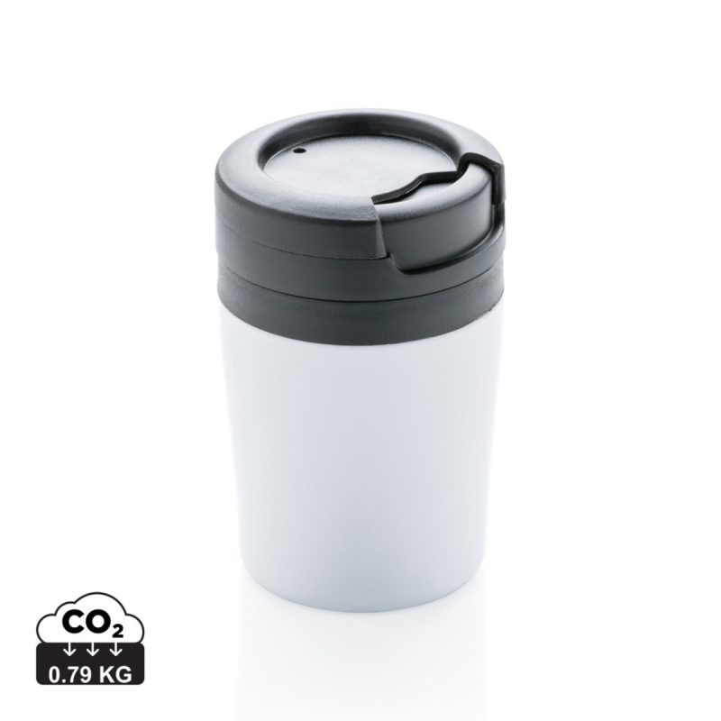 Méně je někdy více. S výškou 8cm je to perfektní termohrnek s dvouplášťovou stěnou pro jakýkoliv kávovar. Vnitřní tělo z PP. Jednoduché otočné víčko zabraňující rozlití. Ideální pro Ristretto, Espresso nebo Lungo. Pouze pro ruční mytí. Objem 160ml. Ochranný vzor®