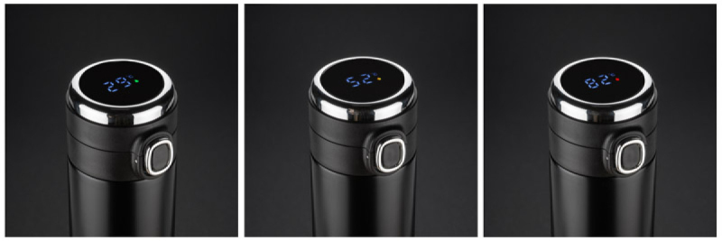 Termální hrnek FOKS je ideální pro dlouhé cesty a pro každodenní použití. Má vakuovou izolaci, díky které udržuje teplotu nápoje až 13 hodin. Má také mimořádně pohodlný gadget, kterým je digitální dotykový teploměr zabudovaný do víčka. Stačí otočit šálek dnem vzhůru asi 10 sekund. a dotkněte se víčka, abyste odečetli teplotu nápoje. Vnitřek šálku je vyroben z vysoce kvalitní nerezové oceli. Uzávěr zámku zabrání náhodnému otevření víka.
