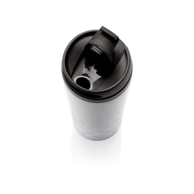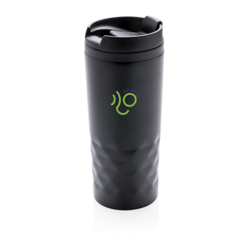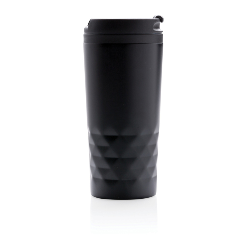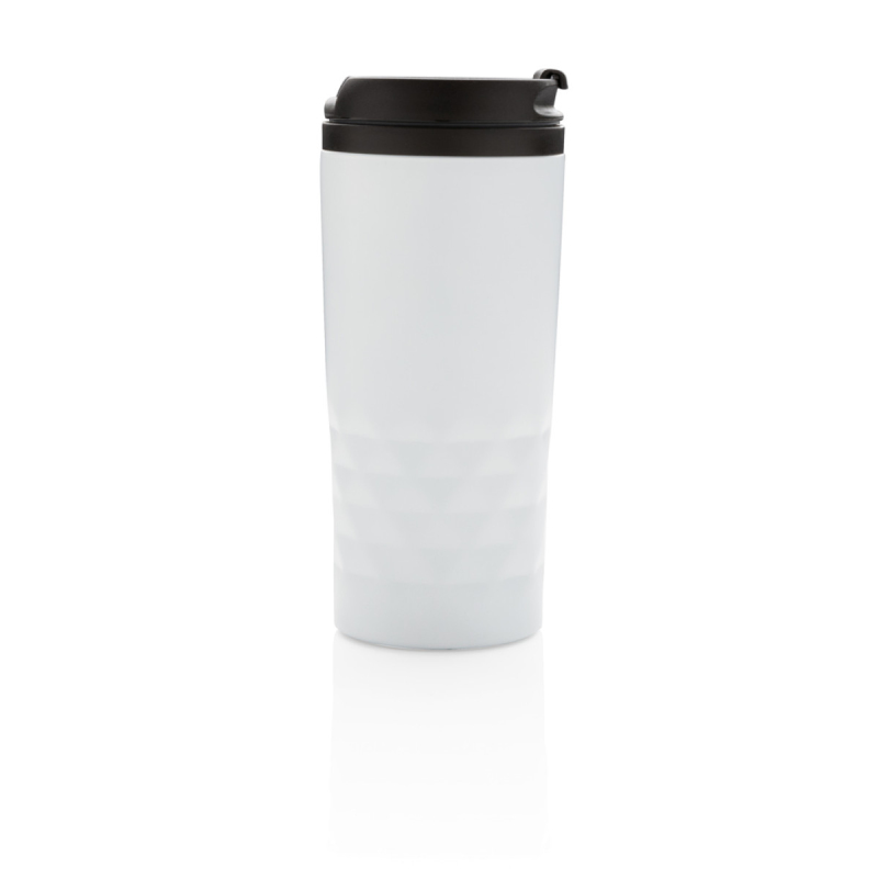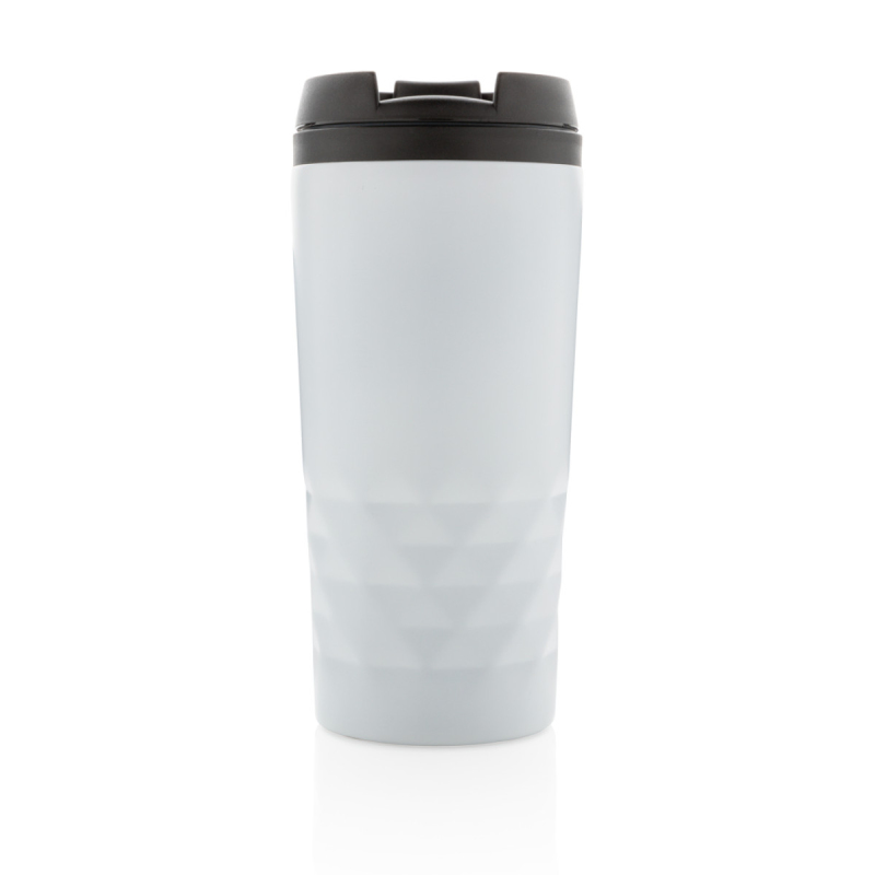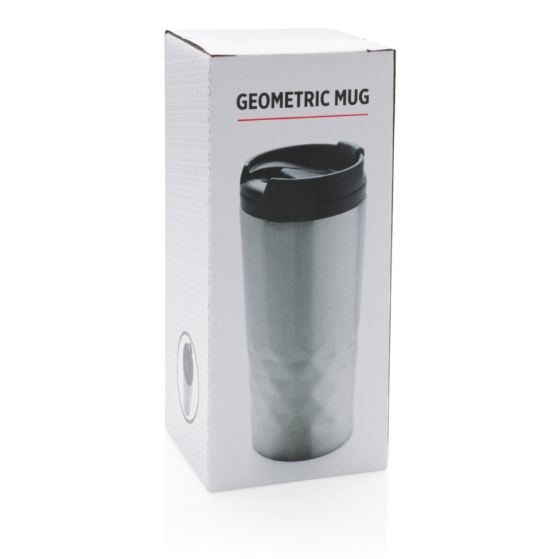 Módní termohrnek z nerezavějící oceli s geometrickým vzorem. Vnitřní tělo vyrobeno z PP. Pouze pro ruční mytí. Objem 300ml.