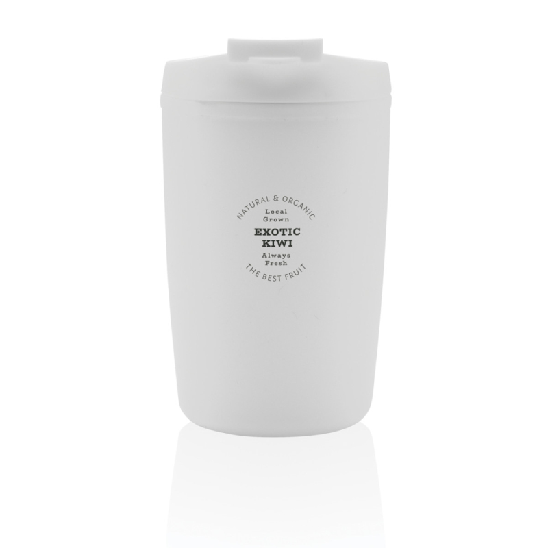 Nepropustný termohrnek s odklápěcím víčkem pro snadné pití. Vyrobeno z GRS recyklovaného PP plastu. GRS (global recycled standard) zaručuje kompletně certifikovaný dodavatelský řetězec, čímž lze garantovat skutečné obsažení recyklátu. Podíl použitého recyklovaného materiálu vzhledem k celkové váze produktu: 97 %. Pouze pro ruční mytí. Bez BPA. Objem: 300 ml. Baleno v FSC kraftové krabičce.