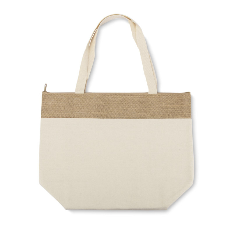 Bavlněná taška JUTO o gramáži 340 g/m² je výjimečně praktický reklamní předmět. Dlouhá ucha tašky poskytují pohodlí při nošení na rameni a široké dno umožňuje snadné balení větších předmětů. Jutová úprava tašky JUTO jí dodává přirozený vzhled a odlišuje ji od ostatních modelů. Největší výhodou tašky je termoizolační vrstva, která účinně udržuje teplotu přenášených produktů, což ji činí ideální pro nákupy, pikniky nebo na pláž. Velká plocha je ideální pro efektivní propagaci značky.