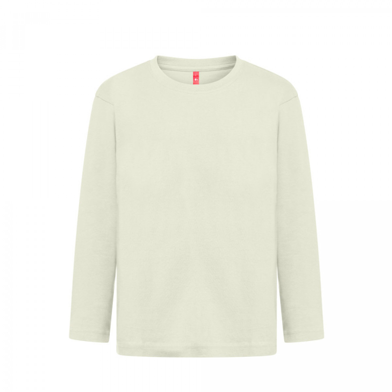 Dětské dlouhé tričko (150 g/m²) s enzymatickým ošetřením, z jerseyového úpletu (100% bavlna z udržitelného zemědělství). 1x1 žebrovaný límec s jerseyovým výztužným pásem. Tubulární tričko s klasickým střihem a dvojitým prošitím na rukávech a spodní části výrobku. Velikosti: 2, 4, 6, 8, 10, 12