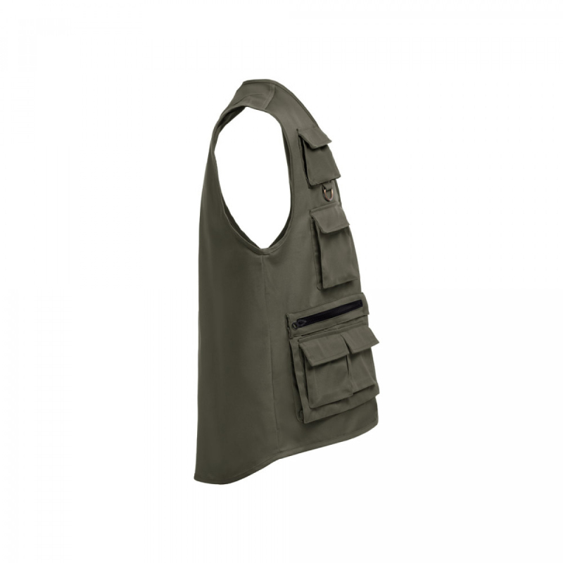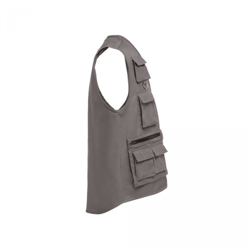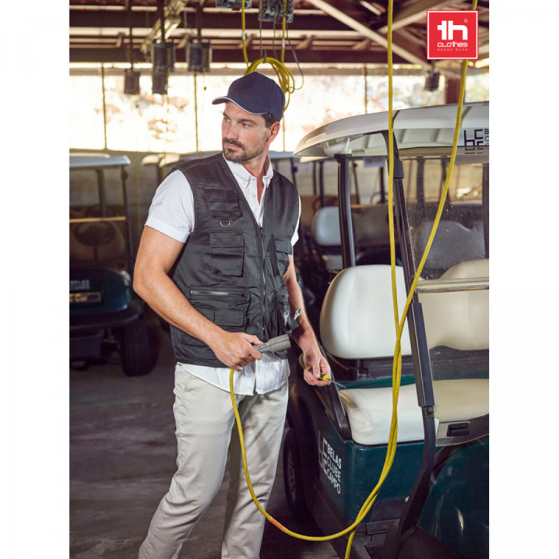Polyesterová (65%) a bavlněná (35%) vícekapsová vesta (200 g/m²) s vodoodpudivou úpravou. Vhodné pro reportéry a další oborové profese. Velikosti: XS, S, M, L, XL, XXL