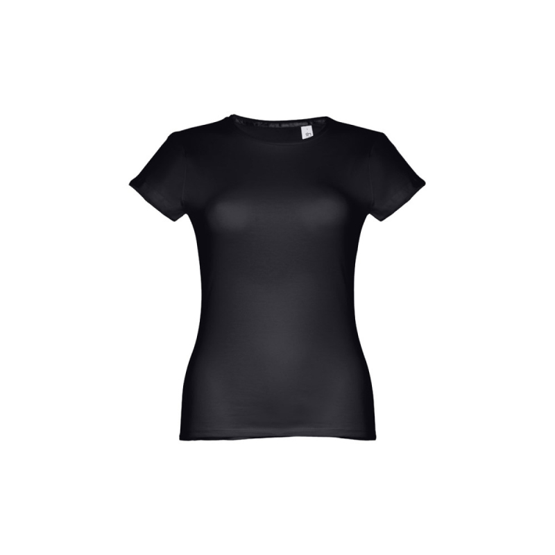 Dámské žerzejové tričko ze 100% bavlny (150 g/m²) přilehlého střihu. Barva 83: 90% bavlna/10% viskóza. Úzký žerzejový límec se saténovým žebrováním. Dvojité prošití na rukávech a dolním lemu. Šité po stranách. Velikost: 3XL