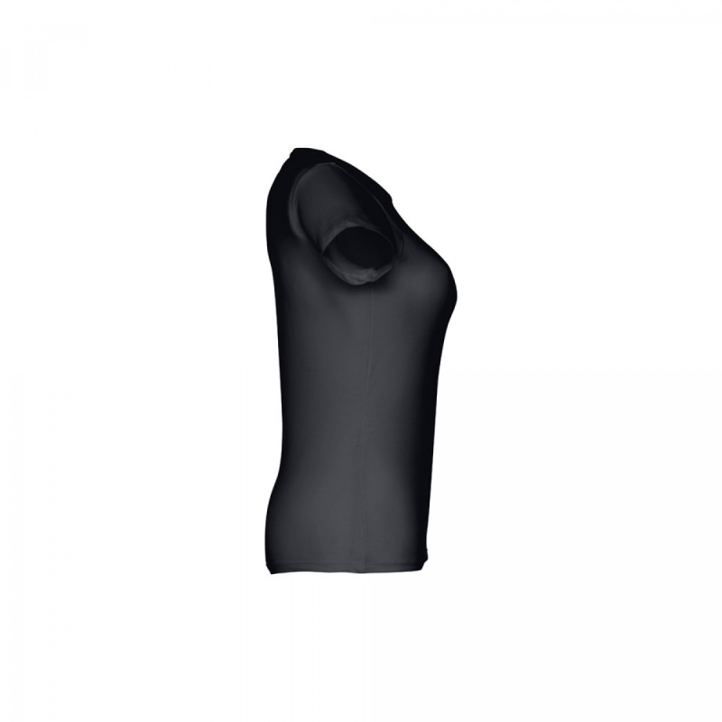 Dámské žerzejové tričko přiléhavého střihu ze 100% bavlny (150 g/m²). Barva 183: 90% bavlna a 10% viskóza. Tenký žerzejový límec se saténovým žebrováním. Dvojité prošití na rukávech a spodním lemu. Šité po stranách. Velikosti: S, M, L, XL, XXL