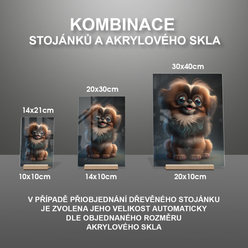 V případě přiobjednání dřevěného stojánku je zvolena jeho velikost automaticky dle objednaného rozměru akrylového skla viz produktové foto.