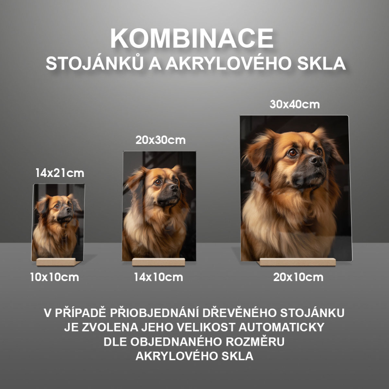 V případě přiobjednání dřevěného stojánku je zvolena jeho velikost automaticky dle objednaného rozměru akrylového skla viz produktové foto.