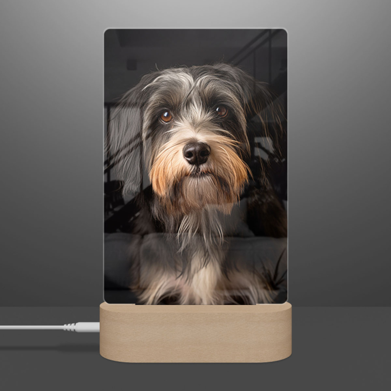 Lampa s digitální grafikou psa