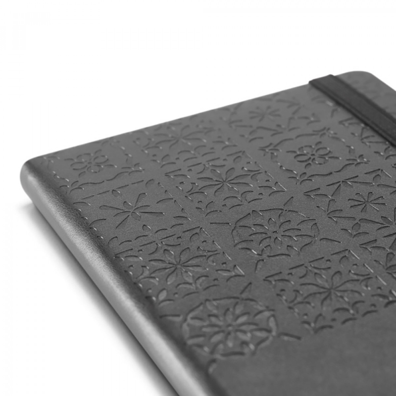 TILES je poznámkový zápisník A5 z imitace kůže, s 256 linkovanými stranami. Celý design poznámkového bloku byl inspirován kulturními prvky, v tomto případě portugalskými dlaždicemi. Elastický pásek, který uzavírá zápisník, záložku a držák pera (pero není součástí balení) posiluje funkčnost tohoto zápisníku. Je to více než zápisník, je to médium pro elegantní a jedinečnou komunikaci. Dodáváno v dárkové krabičce. 140 x 210 mm | Krabička: 177 x 250 x 24 mm