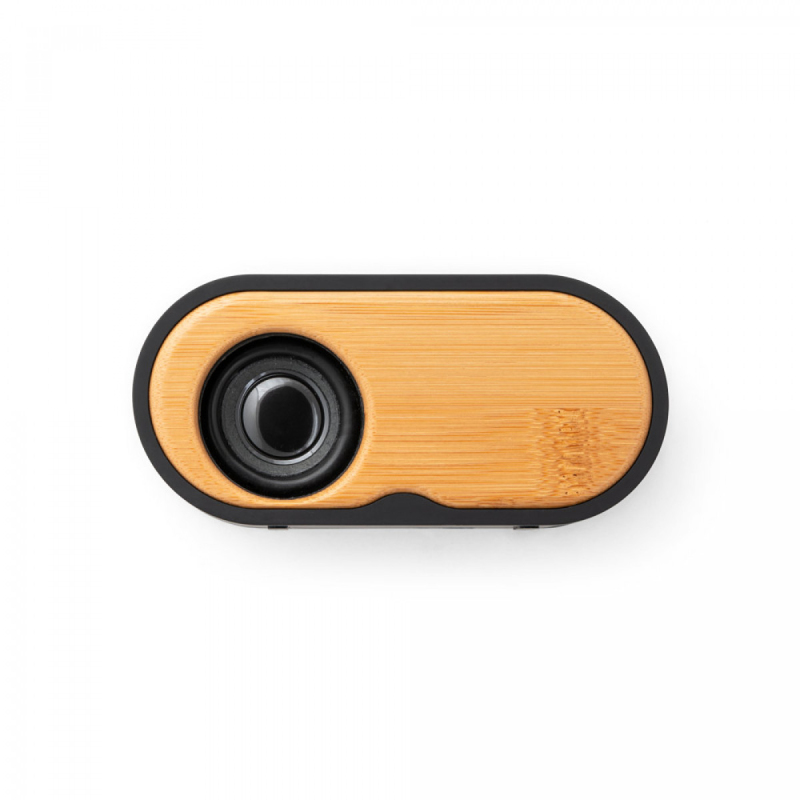 Přenosný reproduktor z recyklovaného ABS a bambusu. S výkonem 3W, přenosem Bluetooth 5’0 a funkcí rádia. Autonomie až 5 hodin s baterií 1200 mAh. Dodáváno v dárkové krabičce z kraftového papíru. 135 x 40 x 65 mm