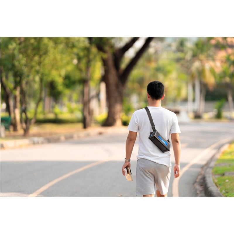 Přenosný reproduktor z ABS. S bezdrátovým přenosem BT v5’0, ekvalizérem se 4 přednastavenými režimy, USB-A vstupem a 3.5mm pomocným vstupem. Se zvukovým výkonem 16W (2x 8W) a velkou 3 000 mAh baterií poskytuje přibližnou výdrž baterie 5 hodin a funguje jako power banka přes USB-A port. Přiložený popruh na přenášení umožňuje snadné a bezpečné přenášení nebo zavěšení reproduktoru. Hlasitost a seznam skladeb můžete ovládat ze svého mobilního zařízení. Velké mřížky umožňují větší prostor přizpůsobení. Obsahuje nabíjecí kabel USB-C a 3.5 mm audio kabel. Dodáváno v bílé dárkové krabičce. 250 x 100 x 90 mm