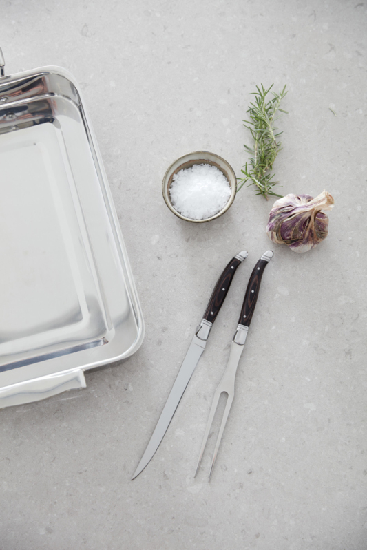 Sada obsahující tranšírovací nůž a vidličku v typickém francouzském bistro stylu. Rukojeť z černého dřeva pakka a čepele z vysoce kvalitní nerezové oceli. Baleno v exkluzivní dárkové krabičce.