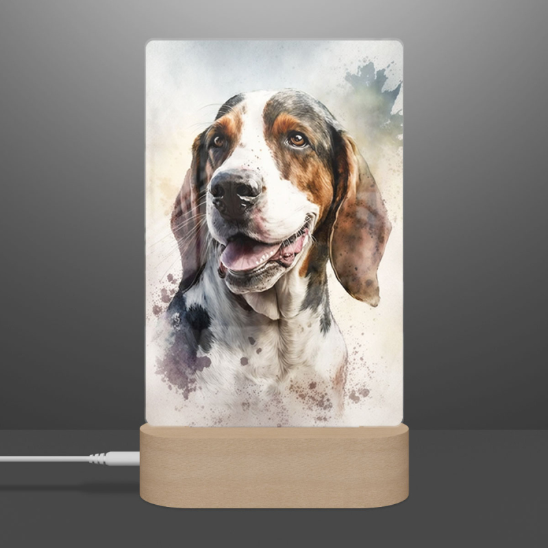 Součástí balení je akrylové sklo dle výběru, dřevěný RGB LED stojánek a napájecí USB kabel.