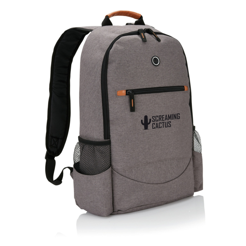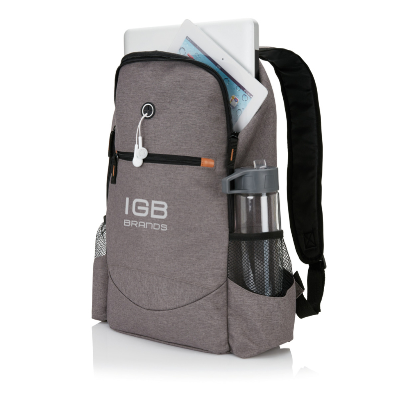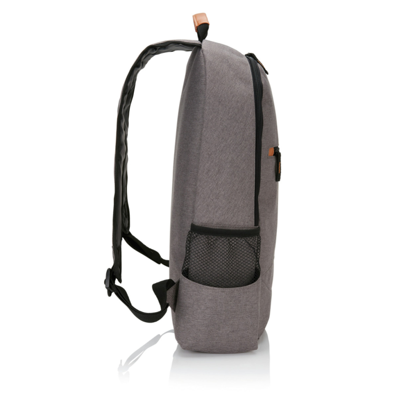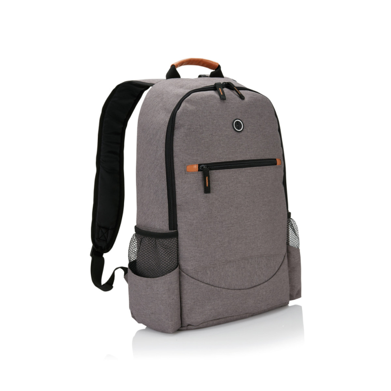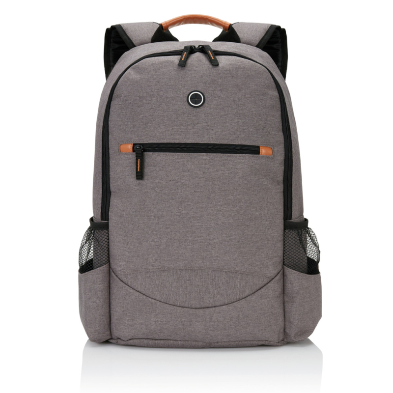 Dvoutónový batoh z polyesteru 600D s módními hnědými detaily na uchu a zipech.