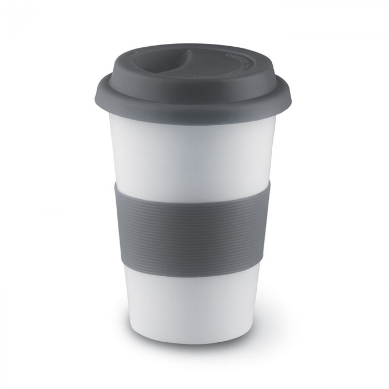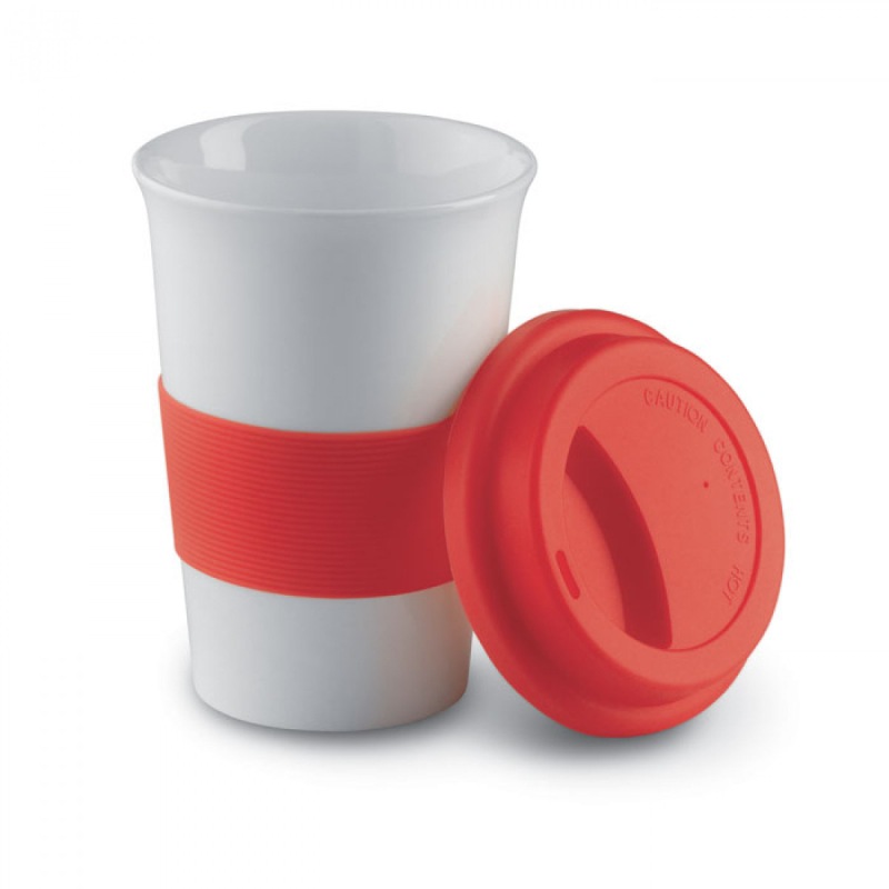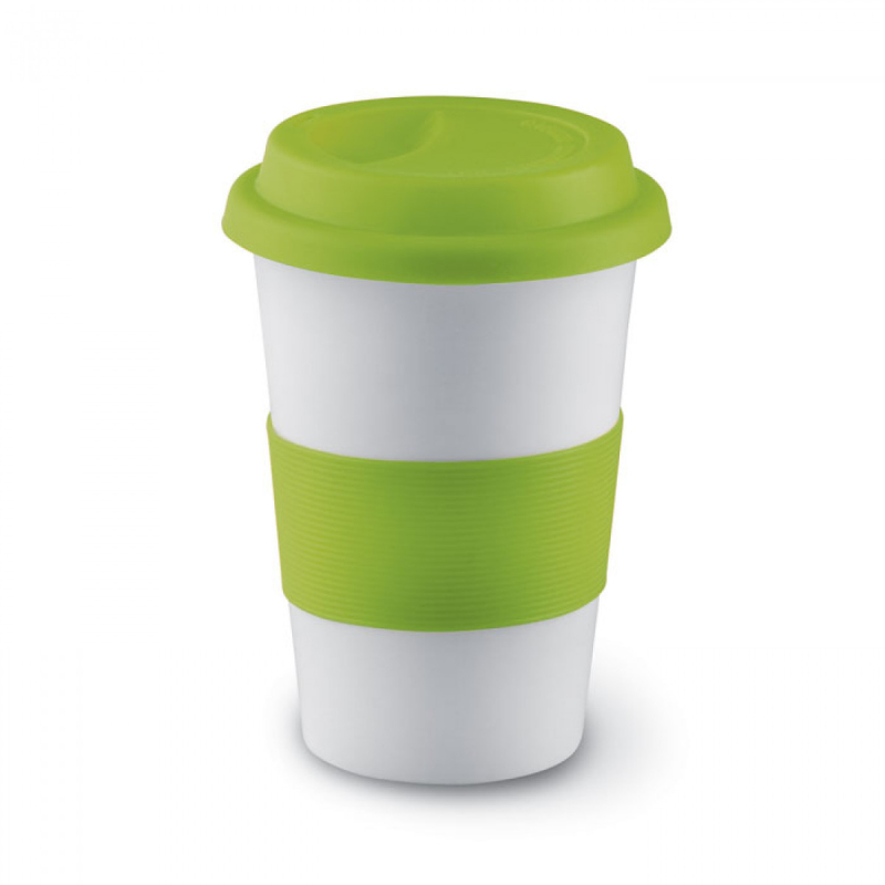 Jednostěnný keramický hrnek se silikonovým pítkem a držadlem. Objem 350 ml. Možný keramický transferový potisk.