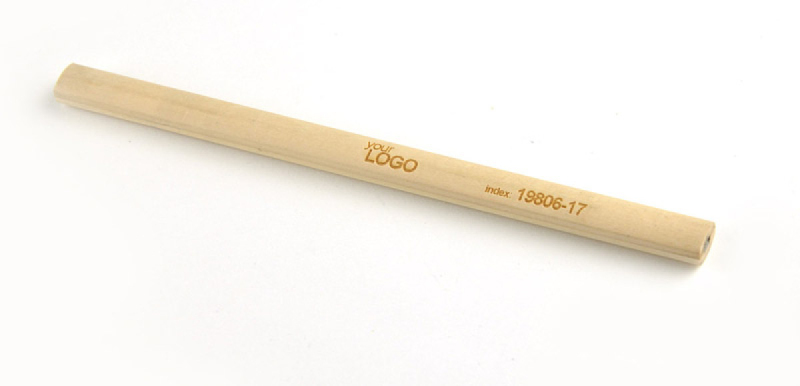 Klasický dřevěný tesařský tužka. Tvrdost tužky: F. Logo může být vyryto nebo vtisknuto na povrch tužky.