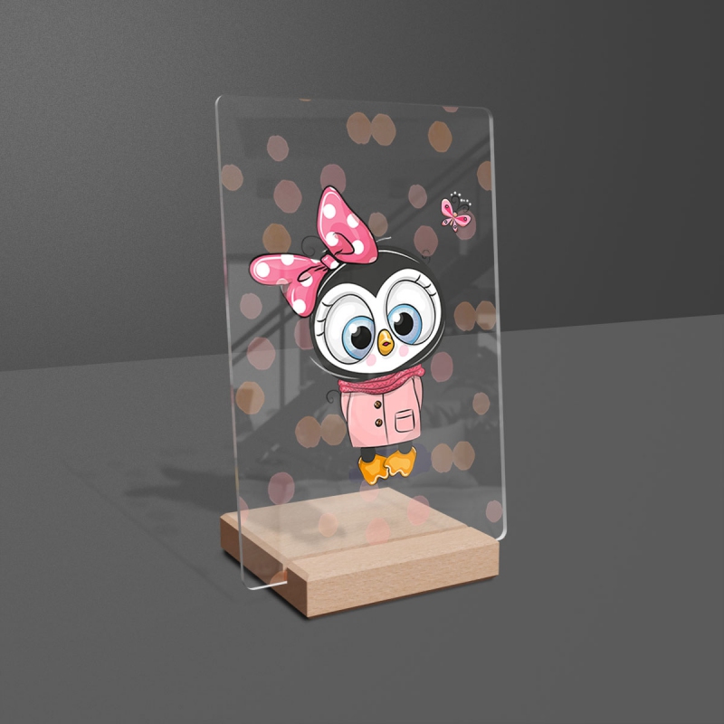 Na produktovém fotu vyobrazena nejoblíbenější varianta akrylového skla 14x21/21x14cm a dřevěný stojánek 10x10cm.