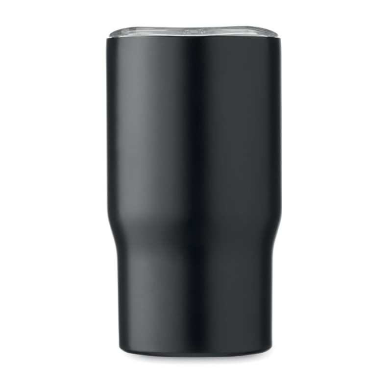Dvoustěnný hrnek z recyklované nerezové oceli (90 % recyklovaná nerezová ocel a 10 % nerezová ocel) s dřevěnou rukojetí a víčkem s posuvným zavíráním. Objem: 350 ml.