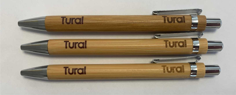 Bambusové tělo propisky TURAL je doplněno stříbrnými doplňky a kovovým rovným klipem.