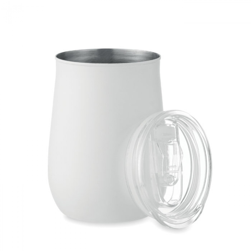 Hrnek z recyklované nerezové oceli (90 % recyklované nerezové oceli a 10 % nerezové oceli) s práškovým nástřikem. Víčko s posuvným zavíráním. Objem: 500 ml.