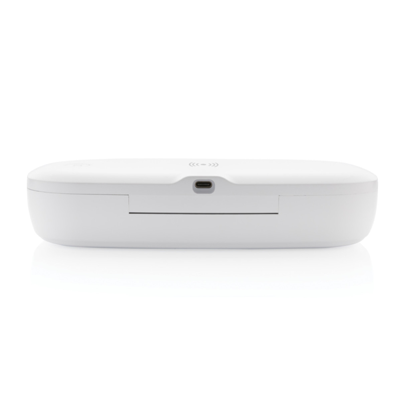 Multifunkční UV-C sterilizátor, který zabíjí až 99,9 % bakterií na vloženém předmětu. Vhodné například na telefon, sluchátka, hodinky, šperky nebo roušku. Volit lze mezi režimy rychlého čištění (90s) nebo kompletního čištění (5min). 2 UV-C LED světla, vyrobená z netoxického materiálu bez použití rtuti (mnoho dostupných variant na trhu rtuť obsahují). Navrženo tak, aby se při otevření boxu UV-C světlo automaticky zhaslo a uživatel tak nebyl vystaven jeho záření. Světlo má životnost 10 000 hodin. Bezdrátová nabíječka 5W umístěná na horní straně boxu. Včetně 1m USB C kabelu z TPE (PVC free). Vstup: 5V/1.5A. Výstup: 5V/1A 5W.